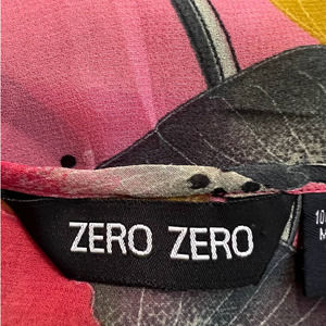 Zero Zero blouse in tiered floral print of pink and yellow, spaghetti straps, beaded, size medium