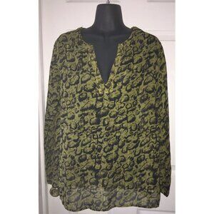 Zero Zero Olive Green Leopard Animal Print Sheer Blouse Shirt Coverup Top Large