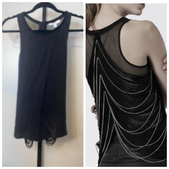 Zero-sleeved silk blouse, round neck and strappy neckline detail at the back.