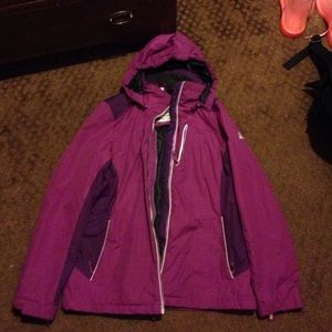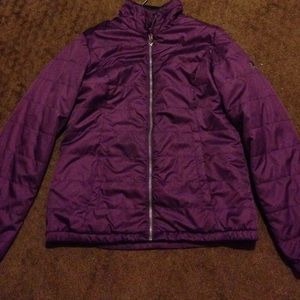 2 shades of purple with some white lines .Brand New. Keeps you very warm two layers