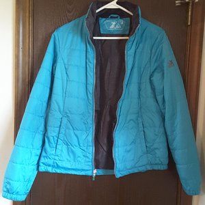 Light puffer jacket size Women's M from ZeroXPosur to stay warm without the weight! This jacket has 3 in one with a white outer shell and removeable, via zippers, turquoise inner shell. They can be worn seperate or together, but both are rain and wind resistant. The white outer shell features a hood, zipper pockets, and snaps as well as zippers to keep you and your belongings safe and warm! The inner shell does not have a hood and pockets without zippers. Without tags, but never worn and was stored away. Small black spot/imperfection from purchase under left arm on white outer shell as shown in picture. Smoke free and pet free home. Any questions please ask! ๐โฅ๏ธ