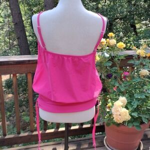 Hot pink swim top. Gathered at top and bottom, gathered at hips with drawstrings, removable pads. Underwire . Size L
