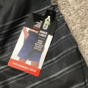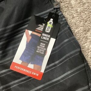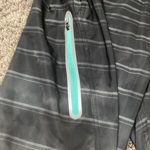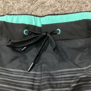ZeroXposur Black and Gray Swim Shorts with Teal Accents
