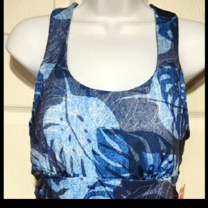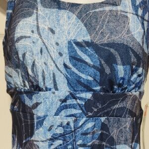 Vibrant blue 🌿 pattern dress by Zeroxposur. Gorgeous colors of. lie in all different hues. Ideal for everyday wear or anytime. has a razorback style that. criss crosses in back. Has removable padded cups in breast area. which is great to give you that hour glass figure. size small. made from polyester and spandex gives that nice stretch measurements are approximately lying flat pit to pit 16 to 17" total length from top of shoulder down 36". brand new With tags.