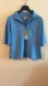 Stylish blue blouse with a half-zip collar. Short sleeves and relaxed fit. Perfect for casual wear.