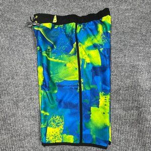 ZeroXposur Drift Swim Trunks Boys XL-18/20 Neon Blue Green Drawstring Pockets