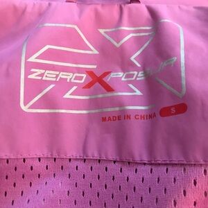 ZeroXposur Fuscia Performance Activewear Lightweight Hooded Jacket Women S. Removable snap on hood. Mesh lining. Two side open pockets. Measures about 24” long, 19” pit to pit, 31” sleeves, 16” across the waist and 19” along the bottom hem. From a non-smoking home.