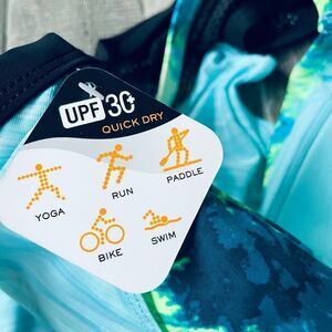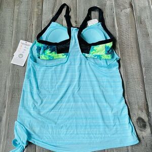 NWT women’s size XS ZeroXposur blue and green tank outdoor athletic tank top with built-in bra and loose outer layer. Sun Smart UPF 30+ quick dry.