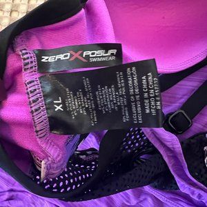 ZeroXposur Swimwear XL Swim Top, mostly purple with black/purple/blue pattern. Great condition, only worn once. Sporty style swim top.