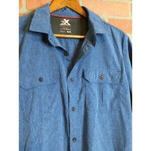 ZeroXposur Travel Series Men Short Sleeve Button Up Shirt Vented Blue Medium
