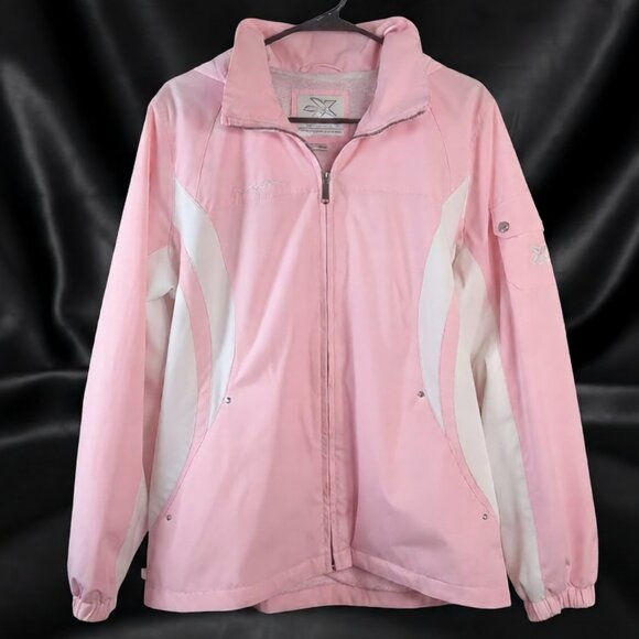 ZeroXposure Womens Windbreaker Jacket Pink White Full Zip Lightweight Size Large