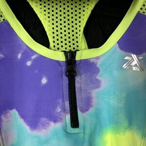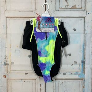 The Zeroxposur Youth Girls Swim Set is a colorful one piece suit that includes a tie-dye pattern athletic style swim top and matching shorts. Made of polyester, nylon, and spandex materials, this swim set offers UV protection and quick-dry features, making it perfect for beach days or poolside fun. With a beach and colorful theme, this 2020-2029 manufactured swim set from the brand ZeroXposur is a stylish and practical choice for young girls sized S 7/8. Easy to care for with a hand wash only requirement, this swim set is sure to keep your little one comfortable and protected while enjoying the water.