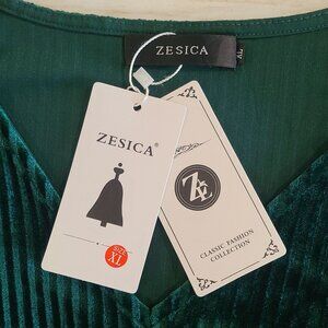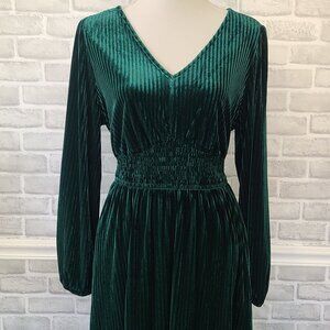 Zesica Emerald Green Velvet Midi Dress Pleated Vneck NEW Wicked Oz Cosplay XL