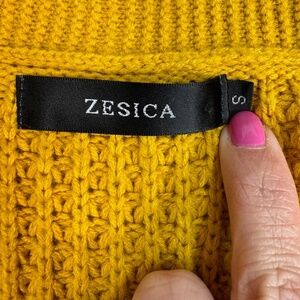 Zesica Open 3/4 Dolman Sleeve Cardigan Womens Size S Waffle Knit Pockets Mustard