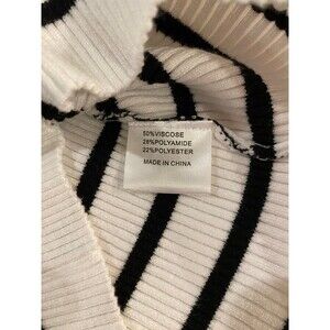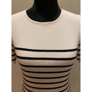 Zesica Sweater Size XL Fits Like Medium Cream Black Striped Casual Short Sleeve. rounded neckline. Small amount pilling noted on front. See all photos