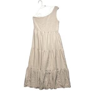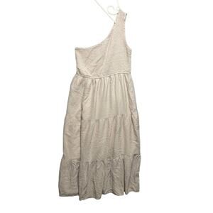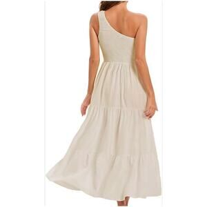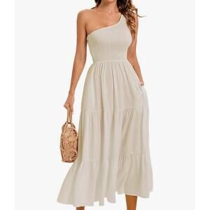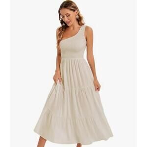 Zesica Tiered Maxi Sun Dress XL Women's One-Shoulder Dress Smocked Boho Cream