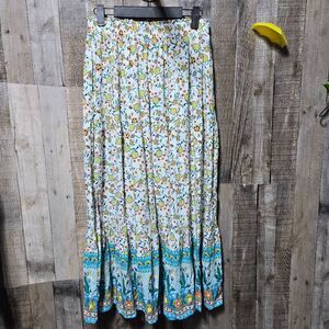 Zesica White Floral Bohemian Hippie Flowy Maxi Skirt