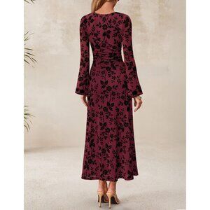 Zesica Women's Burgundy Ruched Mesh Long Sleeve Floral Bodycon Dress