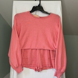 Zesica two-piece pink loungewear long sleeve & shorts size Large