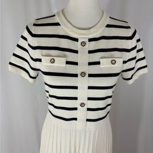Elegant black and white striped dress with a classic design. Perfect for any occasion.