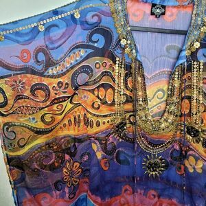 Zeugari Bohemian Silk Beach Cover Up Size Small
