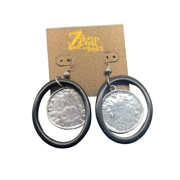 Zevar by Treska Hammered Circle Dangle Drop Earrings Boho Bohemian Hippie