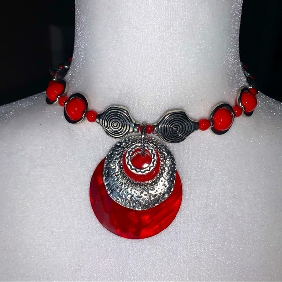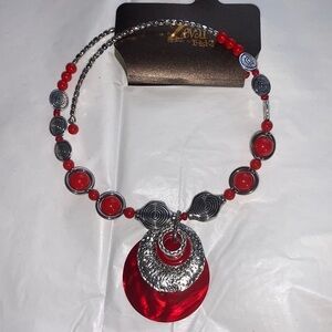 Zevar by Treska red and silver necklace Red beads and shell NWT