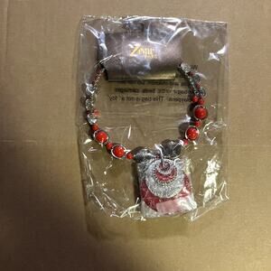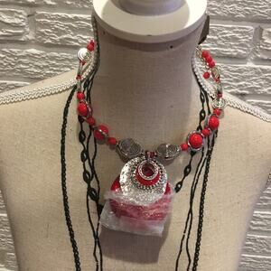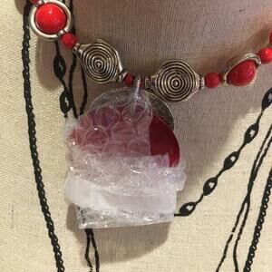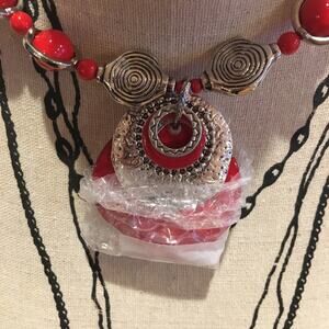 Zevar by Treska Round Necklace Red Silver