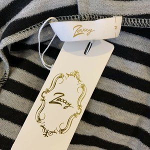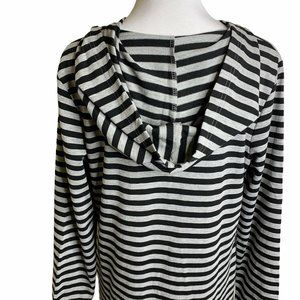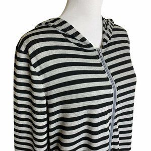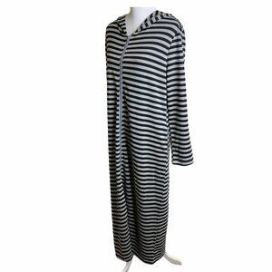 Zexxxy Black Gray Striped Hooded Zip Up Pockets Terry Cloth Maxi Dress M NWT