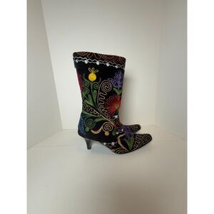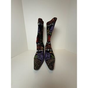 Zeyzani Women's Size 6.5 Black One of a kind Suzani Kitten Knee Hight Boots EUC