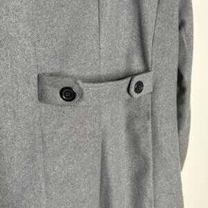 Charcoal gray peacoat with button enclosures down front, on pockets and sleeves. Size medium. Lined. Light usage, some very light fraying of lining. Otherwise good condition.