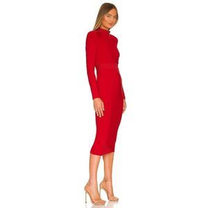 Elegant red midi dress by Zhivago. Features long sleeves and unique cutout design. Perfect for evening wear.