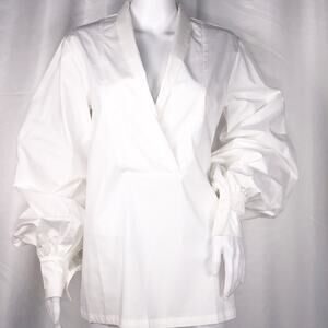 Zhu White Cotton Puff Sleeves Tunic Semi-Wrap Neckline Size Small
