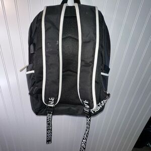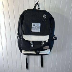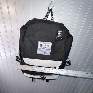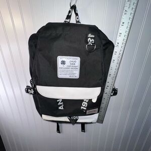 Zhuohan Book-sack Backpack Black White Callout Brand Multi Pocket Zip Close