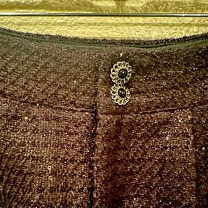 These shorts are gorgeous with little details, small sequins for shine, big beautiful button closures, and pleated pockets. Fully lined for comfort. They give me a channel woven jacket feel