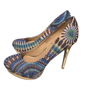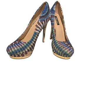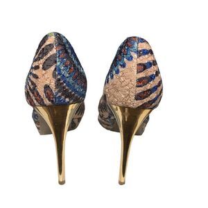 ZiGigirl Pumps Stiletto Abstract Peacock Pattern Colorful Gold Heel, Women’s Siz