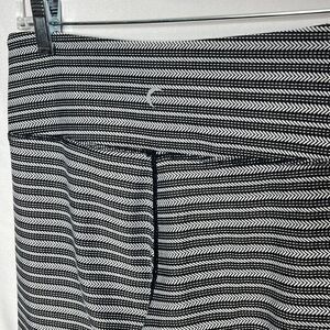 Zia Adrenaline & Deluxe 7/8 Black Aztec Leggings size 6-8. Black and white patterned stripe. Moderate compression. Four way stretch. Excellent condition.