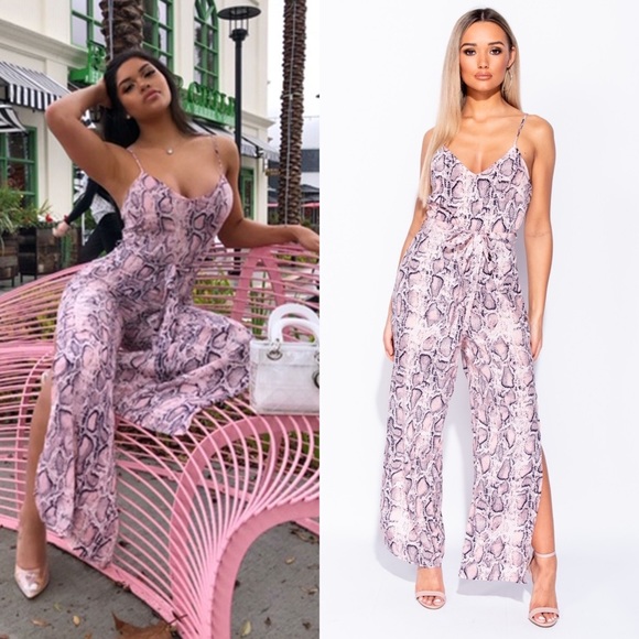 Jumpsuits are without a doubt, a statement style. The head-to-toe, all-in-one garment creates a striking look. Be a picture of perfection wearing this snake print cami style jumpsuit featuring belted waist & side slit. Add strappy heels and statement earrings for a pretty evening look!