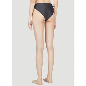 Inspired by business wear from the 90s, these pinstripe-adorned bikini bottoms are featured in a high-rise fit with lace-up detail at both sides and moderate bottom coverage.