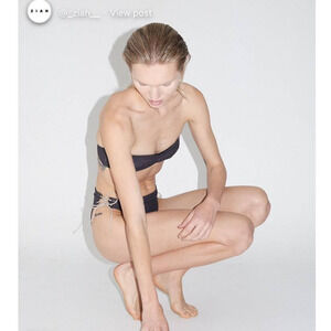 Ziah Goulue High Rise Side Tie Detail Gray White Pinstripe Bikini Bottom Size 12
