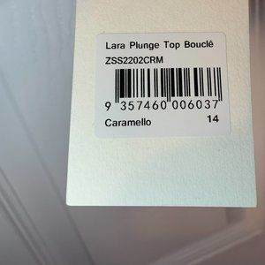 It's the Lara Plunge Top Boucle, in Caramello, a neutral beige.