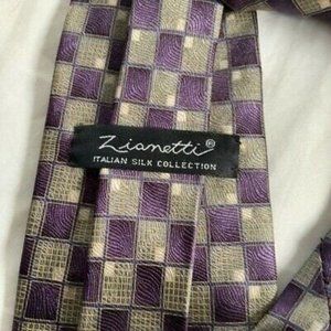 Zianetti Italian Silk Collection Mens Tie Purple Gray Square Fashion Necktie