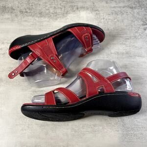 Womens Red Leather Wedge Slingback Sandals by Ziera, Brucey, US Size7.5, EU 38M, Open Toe Loop Closure, Adjustable strap, Low heel, Strappy Sandals, Arch Support, Ankle Strap, Slingback, Buckle Closure, Adjustable Strap Closure, Casual, regular wear.