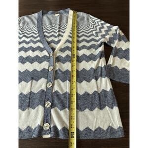 Zig Zag Cardigan Sweater Cotton Cashmere Blue White Zoe Couture M