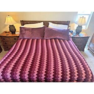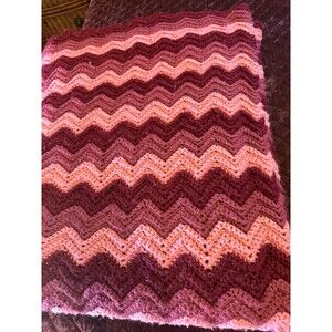 Zig Zag Crochet Blanket Handmade Burgundy Pink Tri-Color 82W x 116L CA KING +