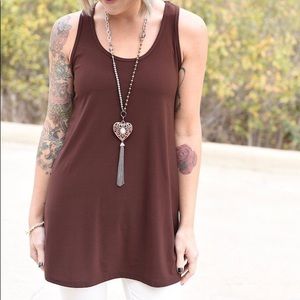 The ZigZag Stripe Day to Day tank in a chocolate brown color. Size small. No nicks, pulls or pilling. Only worn a couple of times and in excellent condition! Great worn by itself or layered.