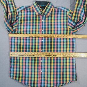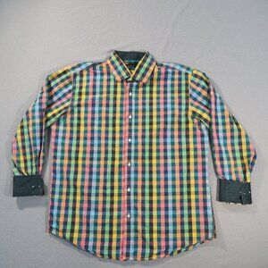 Ziggurat Shirt Mens Extra Large Green Blue Graph Check Flip Cuff Rainbow Maximal