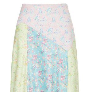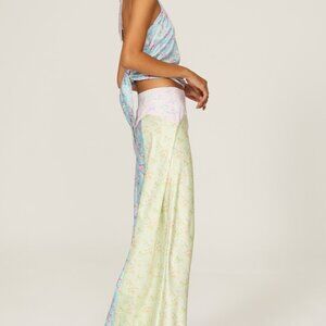 Precious pastels are color-blocked onto this flowy LoveShackFancy skirt detailed with elegant flowers. Style with the matching top and the Fernanda Woven Clutch from Rafé.