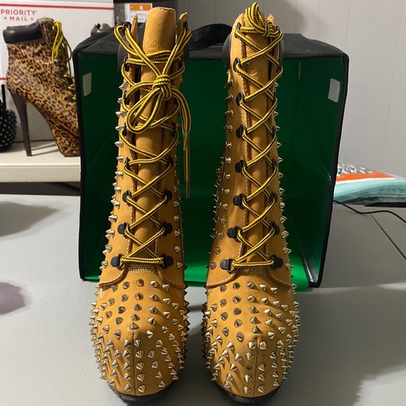 Never worn, no box, no pet no smoke place… it’s missing a spikes in the front of the boot… I found one of the spike in the plastic shoe box… make a offer