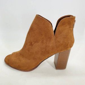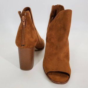 Zigi Girl Womens Ankle Booties Brown Block Heel Peep Toe Back Zipper 10 M